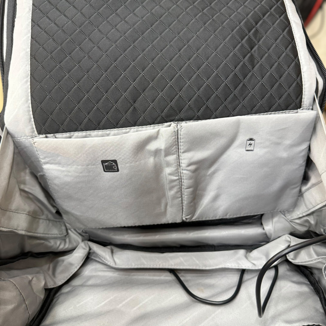 - [Multiple Pocket and Compartments]--There are three compartments and 15 pockets in this bag. The main compartment has a large pocket, wallet and power bank holder, computer and ipad pocket, you can put clothes, books, laptop and other things, the front compartment have many small pockets and can put small items, such as notebooks, pens, keys, cards. The back pocket can hold shoulder straps, books and other large items.Multiple compartments can help you store your belongings better.