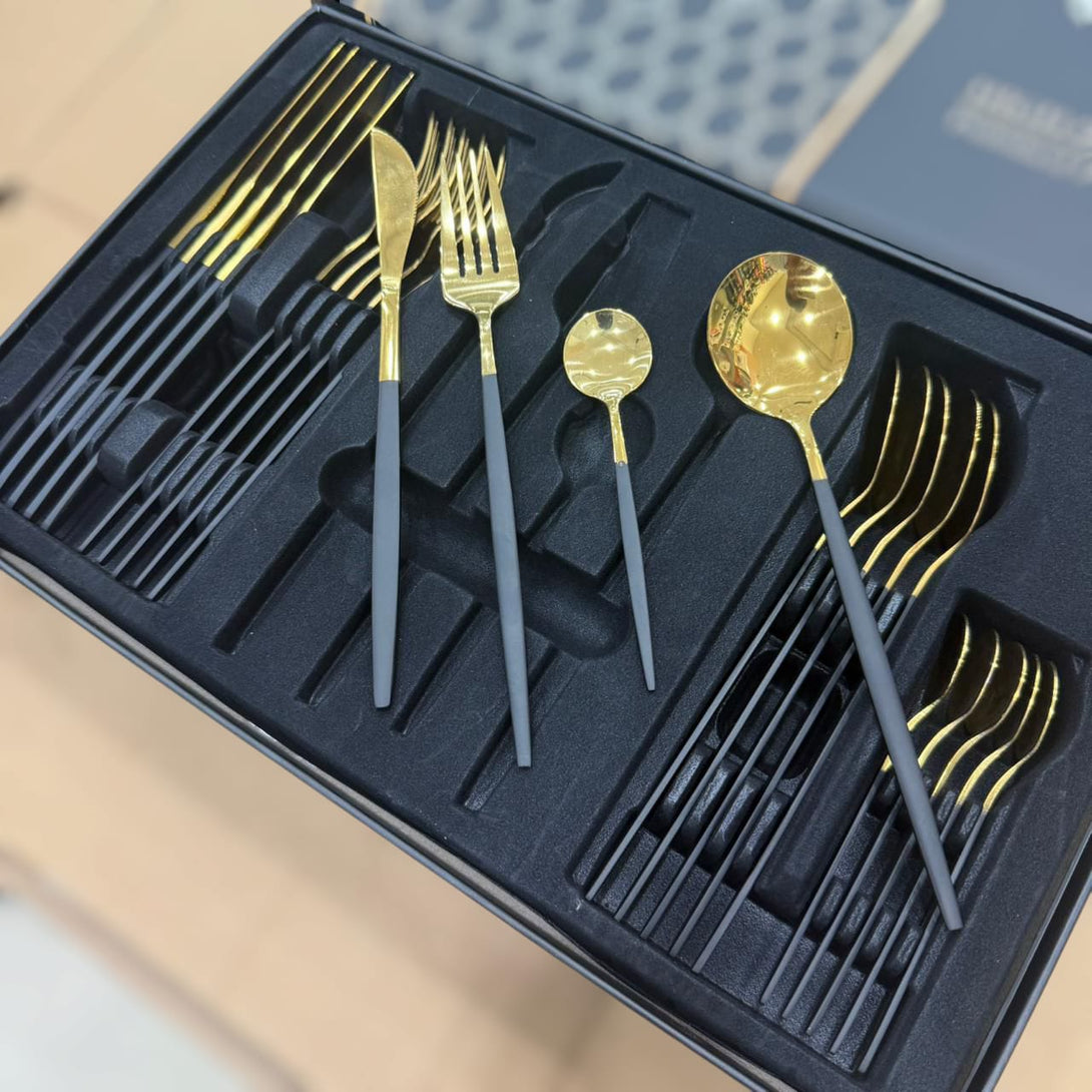 - A complete 24-piece set includes spoons, forks, and knives in different sizes to meet all your table needs from meals to desserts.